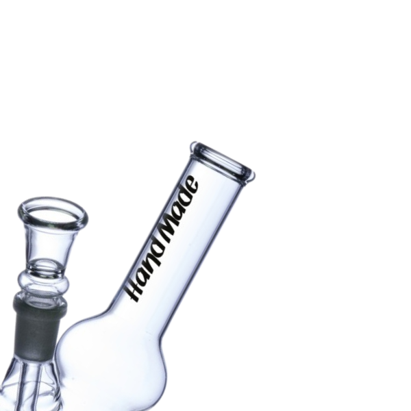 Bongo Handmade é feito de vidro, e mede 19 cm de altura. O design apelativo possui formas arredondadas, além de um pé estável e um bocal reto que proporciona uma experiência de uso confortável. Apesar de pequeno possui uma câmara inferior espaçosa o que garante uma filtragem eficiente, tornando cada tragada suave e agradável.