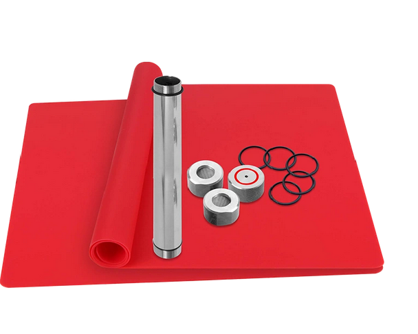 Kit de extração BHO 33 cm: inclui tubo de 33 cm em aço inóxidavel, borrachas de substituição e tapete de silicone.